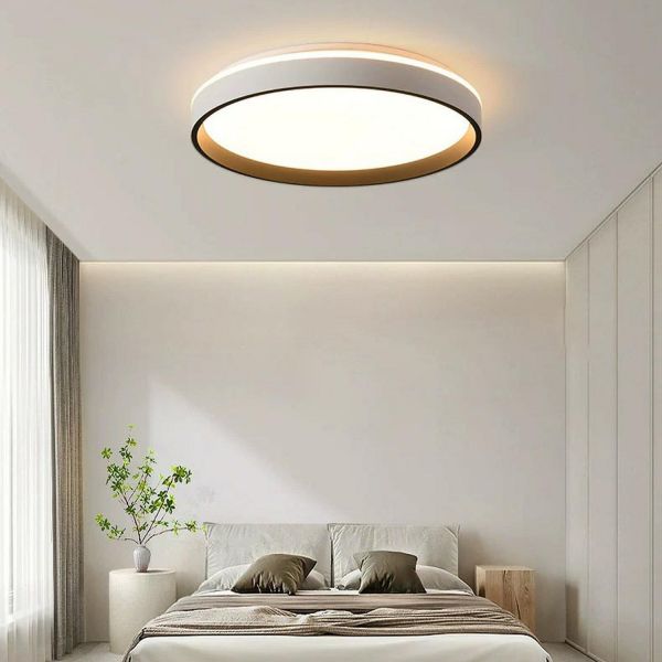 Scandinavian Round LED Flush Mount Ceiling Light, Low Profile Minimalist Fixture for Bedroom and Hallway - Black/White 110V-120V 16"