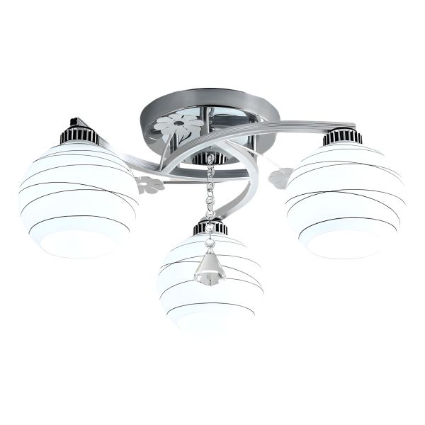 Contemporary Chrome Flush Mount Ceiling Light, Patterned Glass Globes with Floral Accents - 110V-120V 3