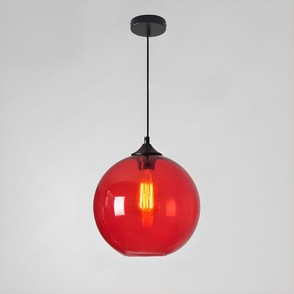 Adjustable Height Modern Globe Pendant Light with Glass Shade - 110V-120V Red
