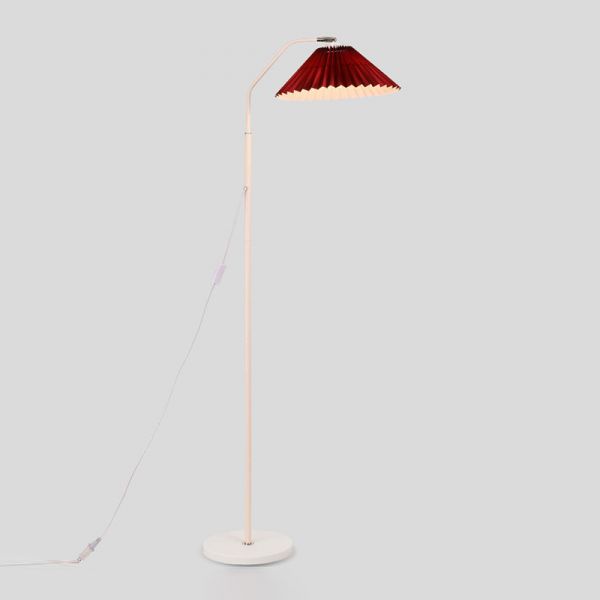 Scandinavian Pleated Floor Lamp with Fabric Cone Shade and Weighted Round Base - Red 110V-120V