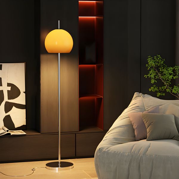 Mid-Century Glass Mushroom Floor Lamp with Weighted Chrome Base & 3 Color Modes - 110V-120V Orange