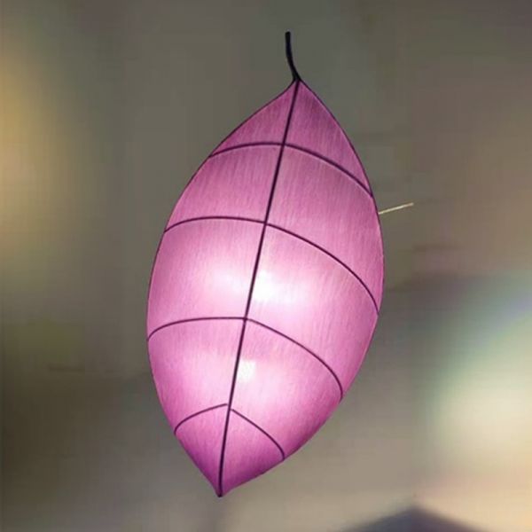 Zen Organic Fabric Leaf Pendant Light, Soft Ambient Suspension Lamp - Purple 110V-120V 24"
