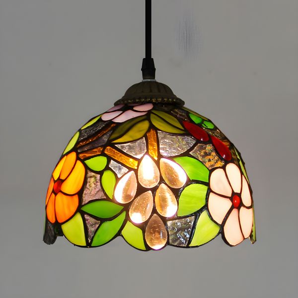 Tiffany Floral Stained Glass Pendant Light, Red & Purple Accent Fixture for Dining Room & Kitchen - 110V-120V Purple 8"