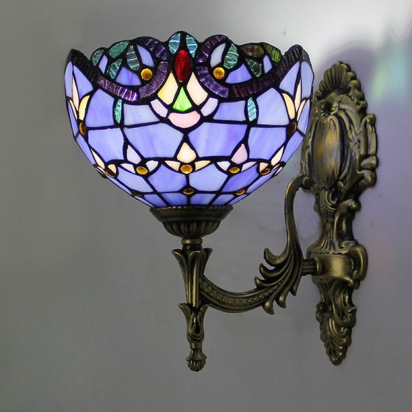 Tiffany-Style Stained Glass & Iron Wall Sconce for Bedroom - Purple 110V-120V