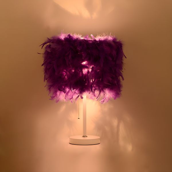Glam Boho Feather Table Lamp with Pull Chain Switch for Bedroom Nightstand or Vanity Desk - 110V-120V Purple