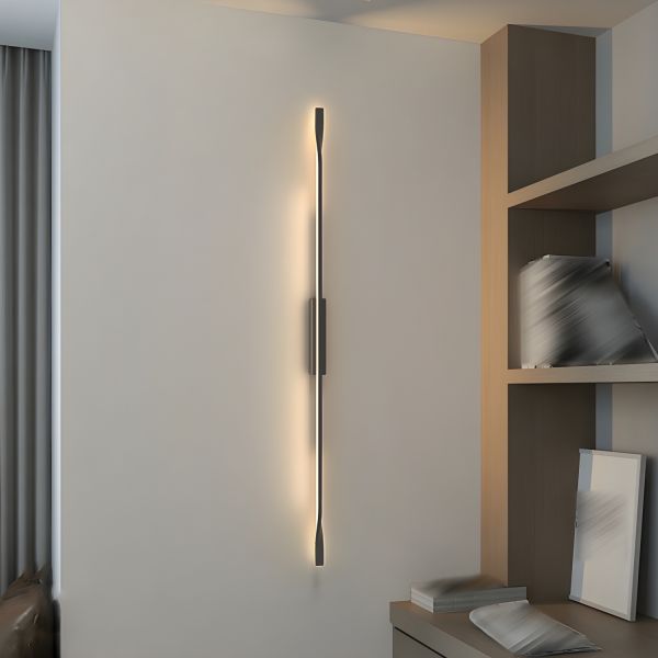 Scandinavian LED Wall Sconce, Slim Vertical Metal Bar Fixture for Hallway & Bedroom Ambient Glow - 110V-120V Black 35.5" Linear