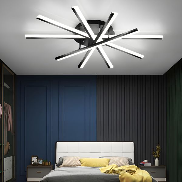 Contemporary Linear LED Flush Mount Ceiling Light, Geometric Black Multi-Bar Art Fixture - 6 110V-120V