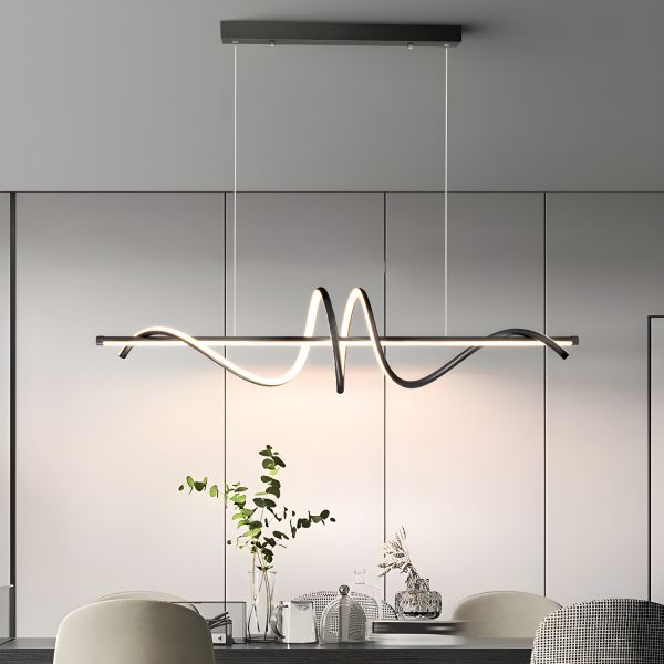Minimalist Linear LED Island Light, Sculptural Wave Suspension Lamp with Aluminum Body for Kitchen Island or Dining Room - 110V-120V White Warm Light