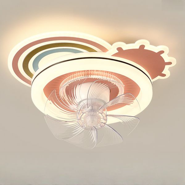 8 Blades Children's Flush Mounted Ceiling Fan with Light, Smooth Dimming Control, Clear Blades, ABS Plastic, LED, Pink, 110V-120V