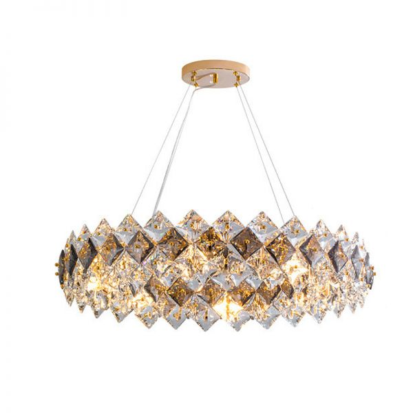 Adjustable Height Chandelier with Clear Crystal, Rock Crystal Shade, 8 Lights, Downward Shade, Chain, and Rectilinear Fixture, 110V-120V, Amber