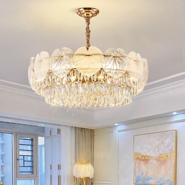 5 Tiers Transparent Shade Chandelier with Adjustable Height, 110V-120V, 8