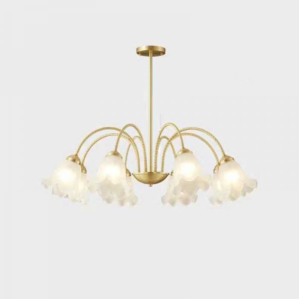 Translucent Water Glass Ceiling Lamp with 9 Lights, Gold, 110V-120V, Ripple Glass