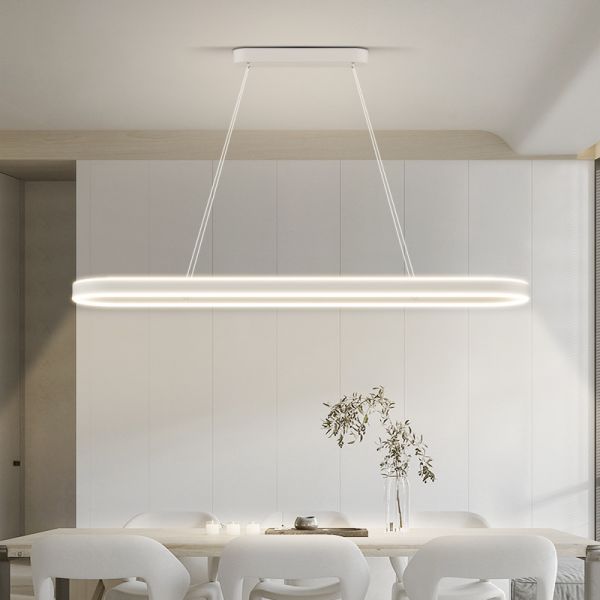 Contemporary Minimalist Oval LED Island Light, Linear Pendant Chandelier, Adjustable Dining Room Fixture - White 110V-120V 31.5" Remote Control Stepless Dimming