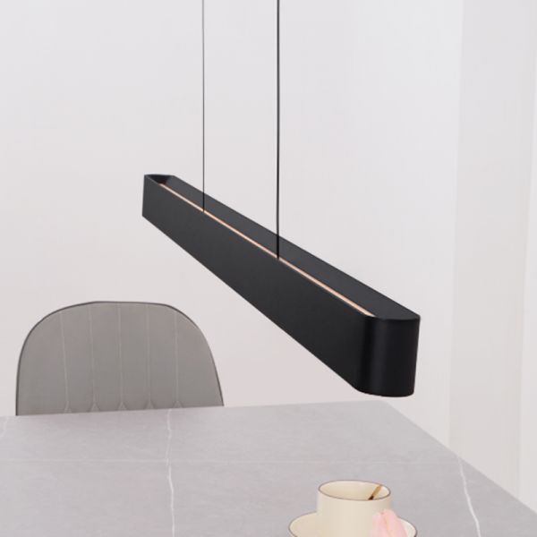 1-Light Linear Simple Light Luxury Modern Style LED Hanging Island Pendant Light - 110V-120V Black 31.5" Remote Control Stepless Dimming