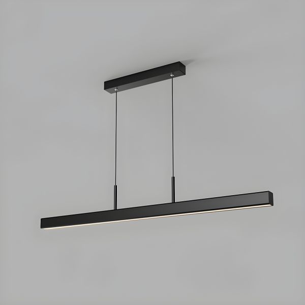 Sleek Minimalist Linear LED Island Pendant, Dimmable Aluminum Bar Chandelier for Kitchen Dining Workspace - Black 110V-120V Remote Control Stepless Dimming 100 cm