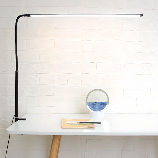Minimalist Gooseneck LED Desk Lamp, Flexible Eye-Caring Task Light for Home Office - Black 110V-120V Remote Control Stepless Dimming Clip