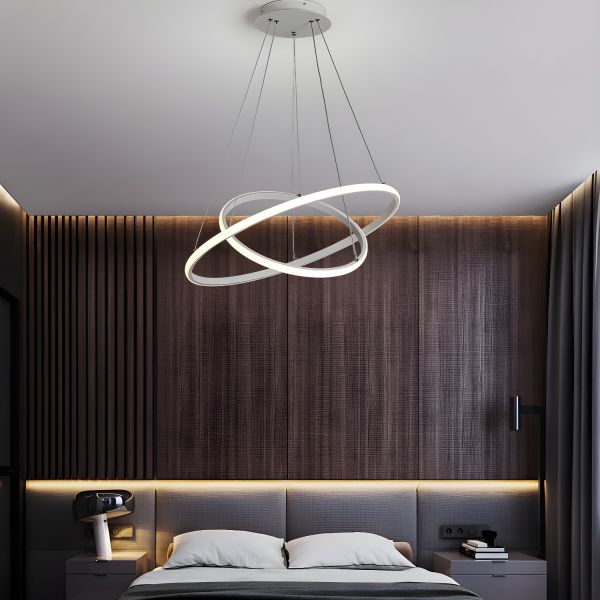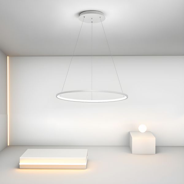 Minimalist Geometric LED Chandelier Adjustable Ring Pendant Light Fixture for High Ceilings - 110V-120V White 16"+23.5"