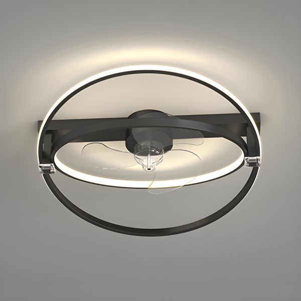 Contemporary Flush Mount Ceiling Fan with Light, Low Profile Bladeless Fandelier for Bedroom - 110V-120V Black Circle