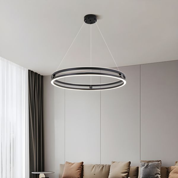 Contemporary LED Ring Chandelier, Adjustable Geometric Pendant Light for High Ceilings - 110V-120V Black 8"+16"+23.5" Remote Control Stepless Dimming