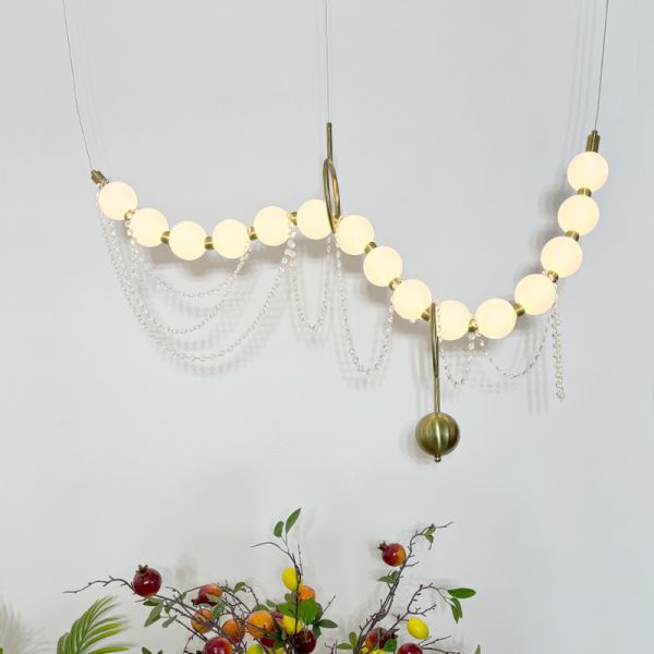 Post-Modern Linear Chandelier, Dimmable LED Globe Island Pendant with Decorative Chains - Gold 110V-120V Remote Control Stepless Dimming 39.5"