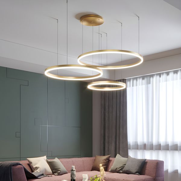 Minimalist Geometric LED Chandelier Adjustable 3-Ring Pendant Light - 110V-120V Gold Remote Control Stepless Dimming 12"+16"+23.5"