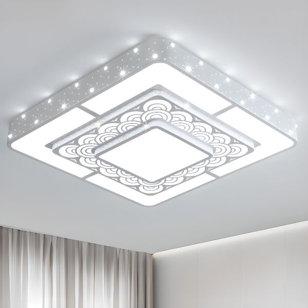 Contemporary Geometric LED Flush Mount Ceiling Light, Acrylic Fixture with Starry Accent - 110V-120V Square White Light