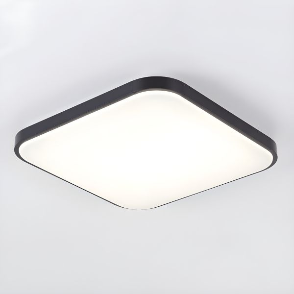 Sleek Geometric LED Flush Mount Light, Low-Profile Matte Black Fixture with Eye-Care Diffuser - 110V-120V Square Large