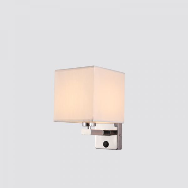 Contemporary Fabric Shade Wall Sconce with Built-In Switch - Chrome White 110V-120V Square