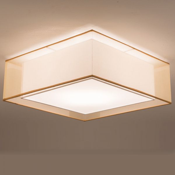 Transitional Fabric Flush Mount Ceiling Light, Double-Layer Shade Fixture with Gold Accents - 110V-120V Square 41 cm