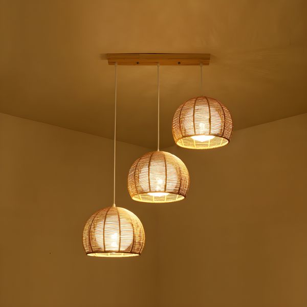 Boho Natural Bamboo Pendant Light, Hand-Woven Rattan Hanging Fixture for Dining Room & Kitchen Island - 110V-120V Dome
