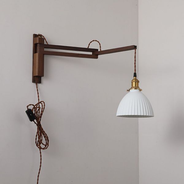 Japandi Solid Wood Wall Sconce with Pleated Ceramic Shade and Articulating Arm - 110V-120V Dome