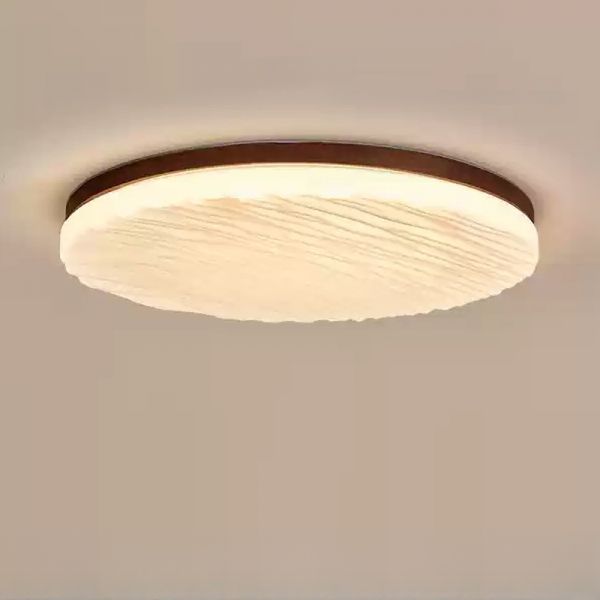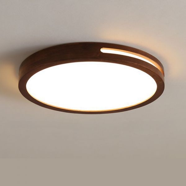 Sepia Wood Ceiling Sconce with White Light, 1 Light Plexiglass Shade, LED Light Fixture Surface Mount, 110V-120V, 12", Round