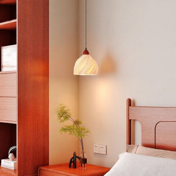 Ivory Regular Ceiling Light with Glass Shade and Lampshade String Mounting and Customizable Hanging Length, 110V-120V, Round Canopy