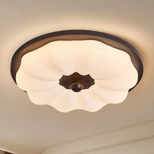 Floral 1 Light LED/Incandescent/Fluorescent Natural Wood Surface Mount Flush Mount Light with Lucite Shade for Sitting Room, 110V-120V, 11", Coppery