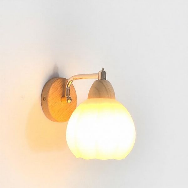 Sphere Brown Wall Light with Milk Glass Shade, Wooden Wall Lamp with Ambient Glass, 110V-120V