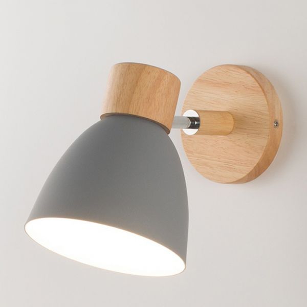 Rotatable Metal Dome Shade Colorful Sconce Light Nordic Style Mini Macaroon Wall Lamp with Wooden Round Base - 110V-120V Grey