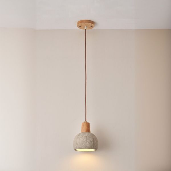 Asian Style Wood Pendant Light with Gray Concrete Shade and Adjustable Hanging Length - 110V-120V 16"