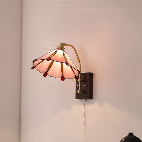 Tiffany-esque Pink Wall Sconce with Shade, Natural Wood Down Glass Cover, 110V-120V