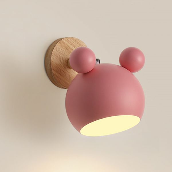 1-Light Nordic Style Solid Wood Sconce Light 7" H Macaroon Style Cartoon Mini Wall Lamp - 110V-120V Pink
