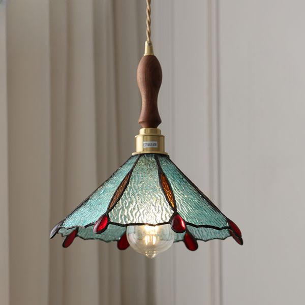 Light Blue Vaulted Ceiling Lamp with Glass Shade for Residential Use, Hardwired String Mounting, 110V-120V, Nut/Brown