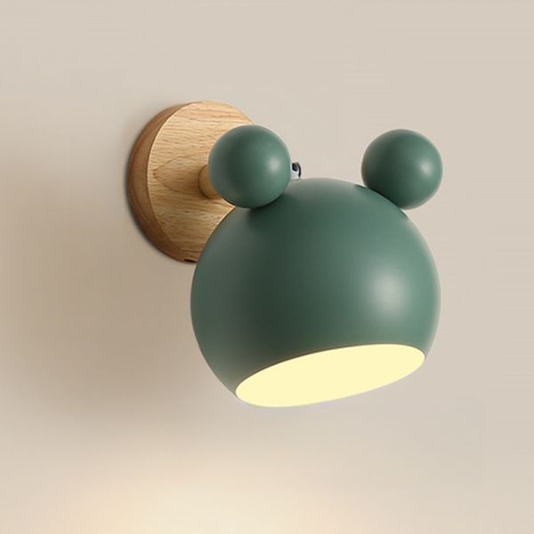 1-Light Nordic Style Solid Wood Sconce Light 7" H Macaroon Style Cartoon Mini Wall Lamp - 110V-120V Green