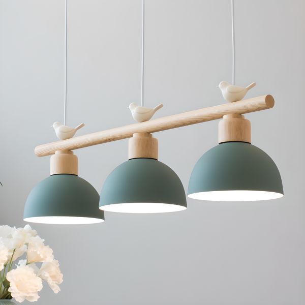 Scandinavian Bird-Accent Dome Pendant Light Three-Light Linear Chandelier for Dining Room & Kitchen - Green Dome 110V-120V
