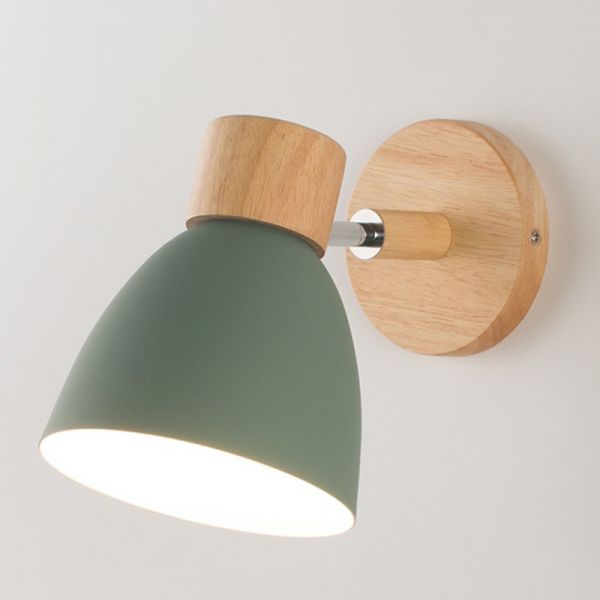 Rotatable Metal Dome Shade Colorful Sconce Light Nordic Style Mini Macaroon Wall Lamp with Wooden Round Base - 110V-120V Green
