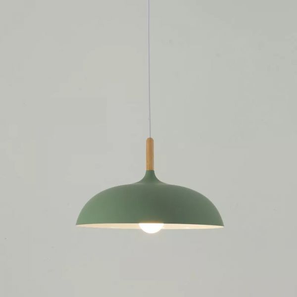 Scandinavian Wood Top Pendant Light, Matte Dome Shade for Dining Room - Green 110V-120V 36 cm