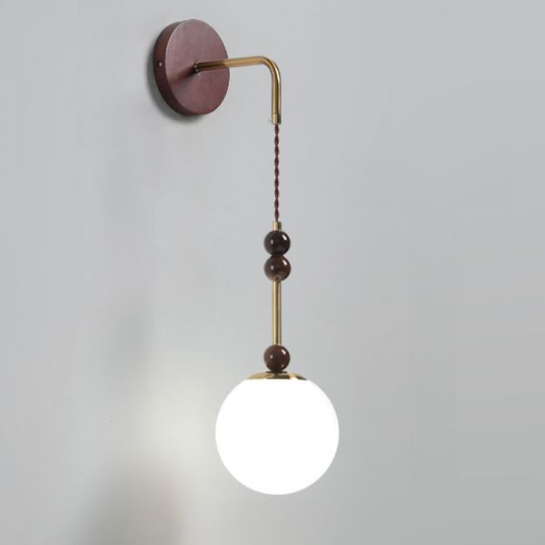 Wooden Ball Wall Light with 1 Light, Downward Chalk Glass Shade, LED/Incandescent/Fluorescent, 110V-120V, Globe