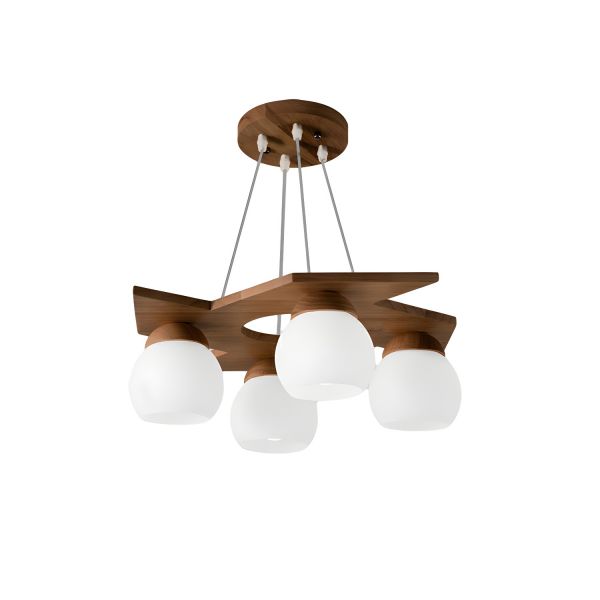Traditional Walnut Wood Chandelier with White Glass Shade and Elegant Style - 110V-120V 3 Bowl