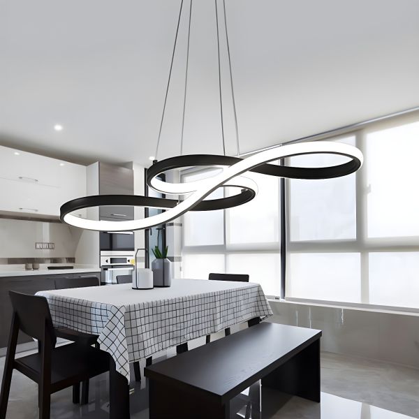 Seamless Curve Dining Room Chandelier Lighting Metal Artistic LED Lighting Fixture - 110V-120V Black Large White Light