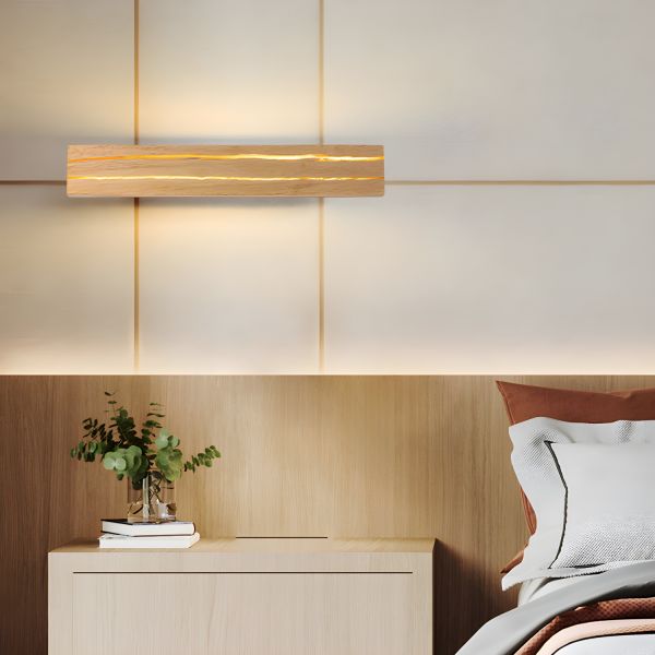 Zen Minimalist Linear Wood LED Wall Sconce with Organic Resin Inlay - 110V-120V Wood Color White Light 12"