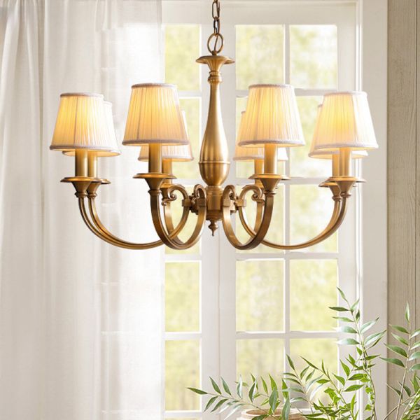 French Country Brass Chandelier with Fabric Shades, Classic Multi-Arm Pendant Light for Dining Room - 110V-120V Brass 8