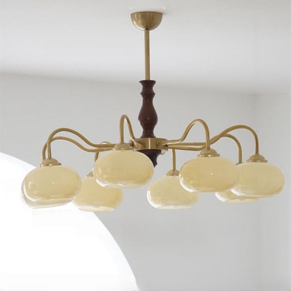 Mid-Century Opal Glass Chandelier, Ambient Semi-Flush Ceiling Fixture - 110V-120V Gold 7 Beige